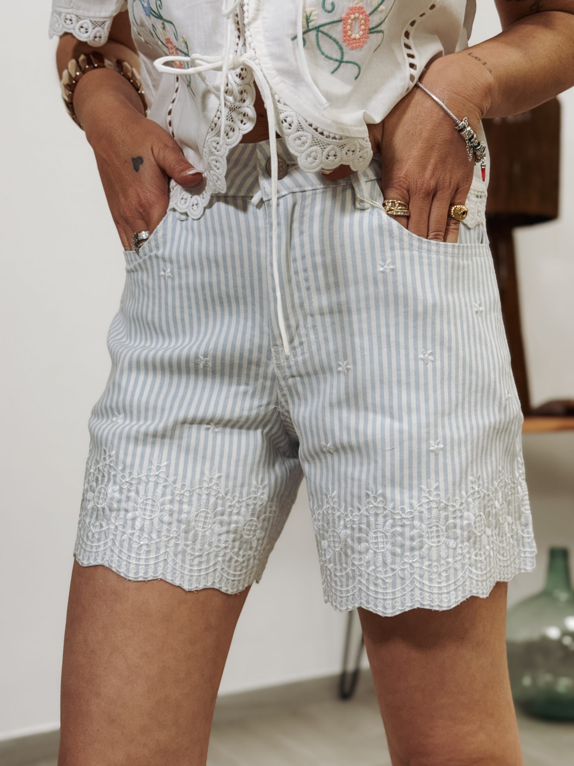 Sé el primero en valorar “Bermuda stripe bordada celeste”
