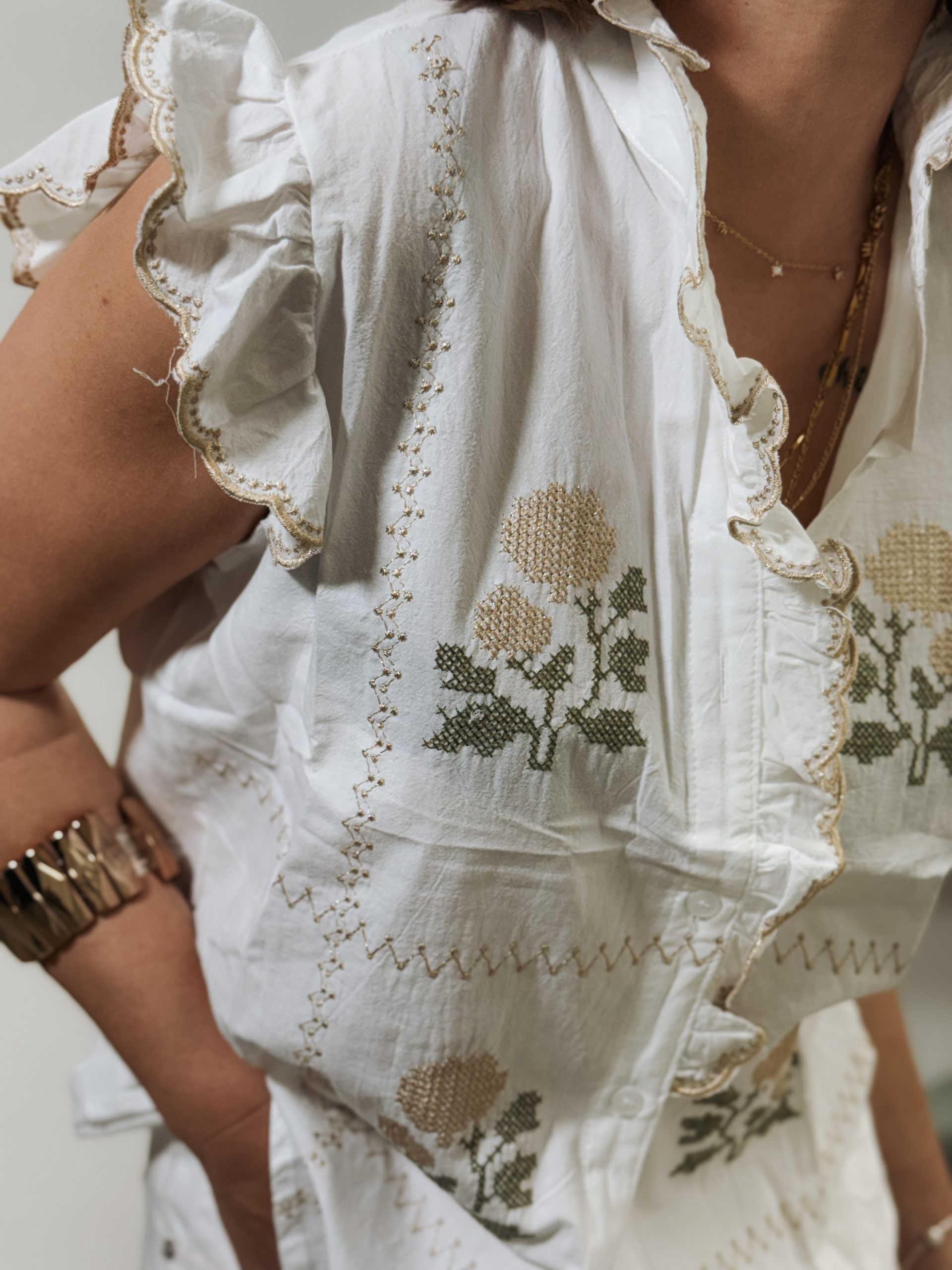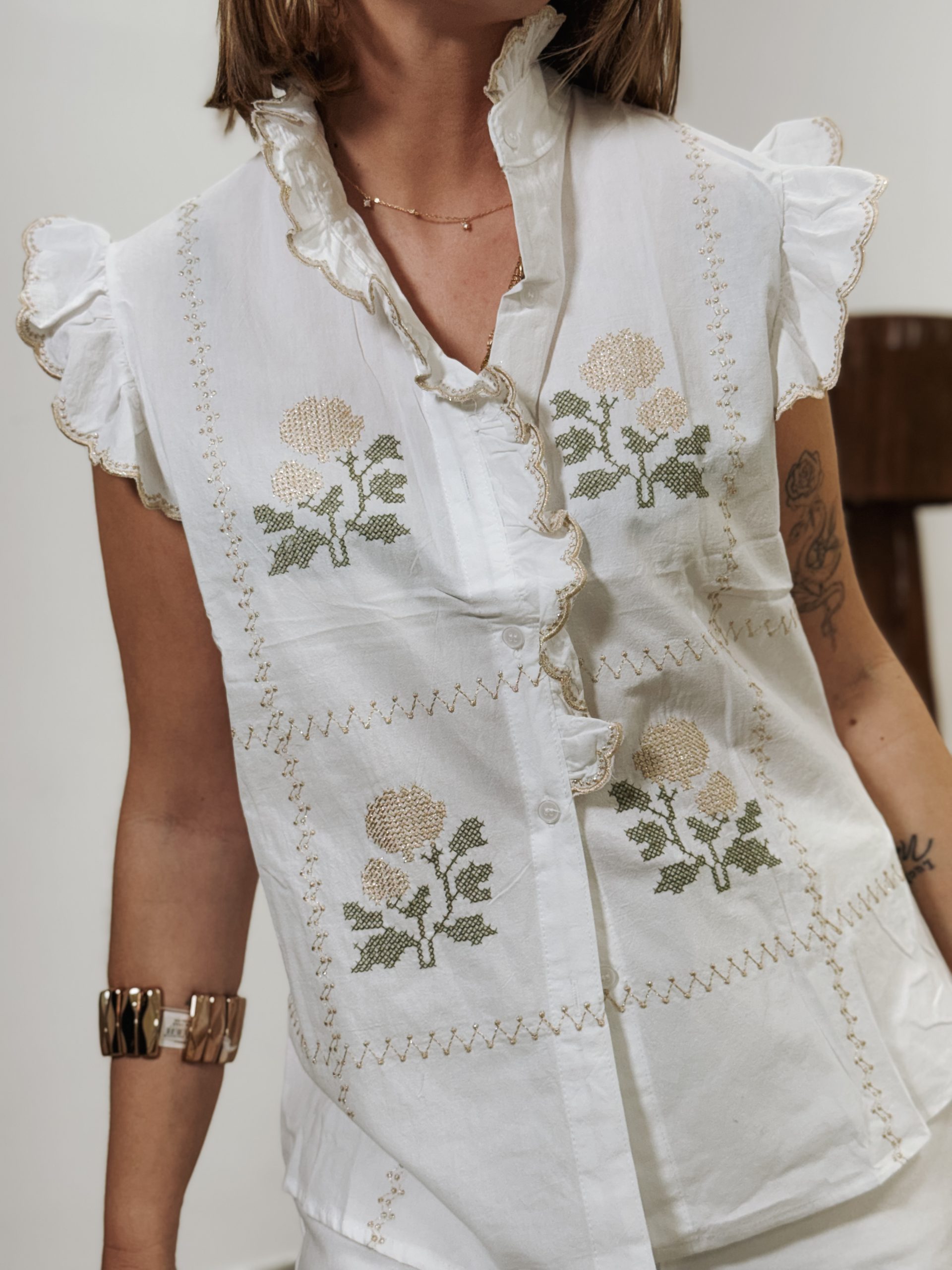 Camisa de algodón bordada a la sisa