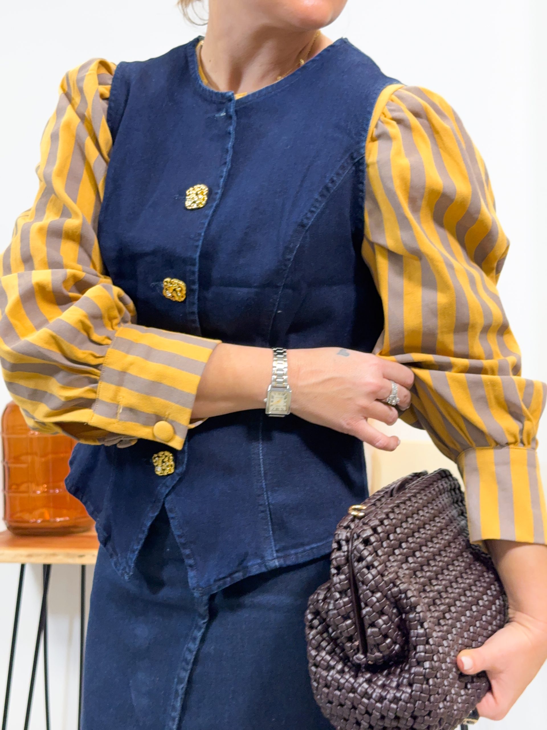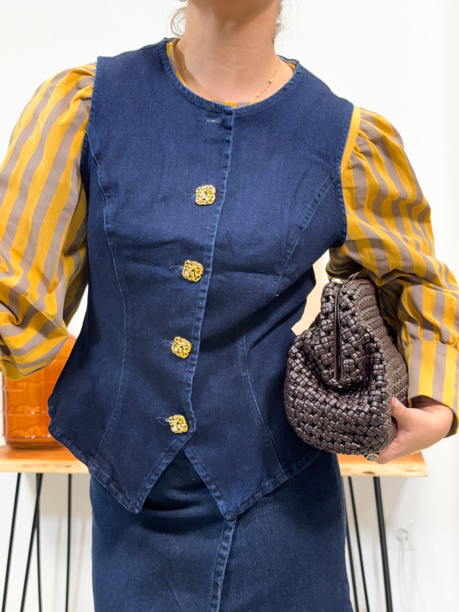 Chaleco de algodón efecto denim abotonado con botones dorados