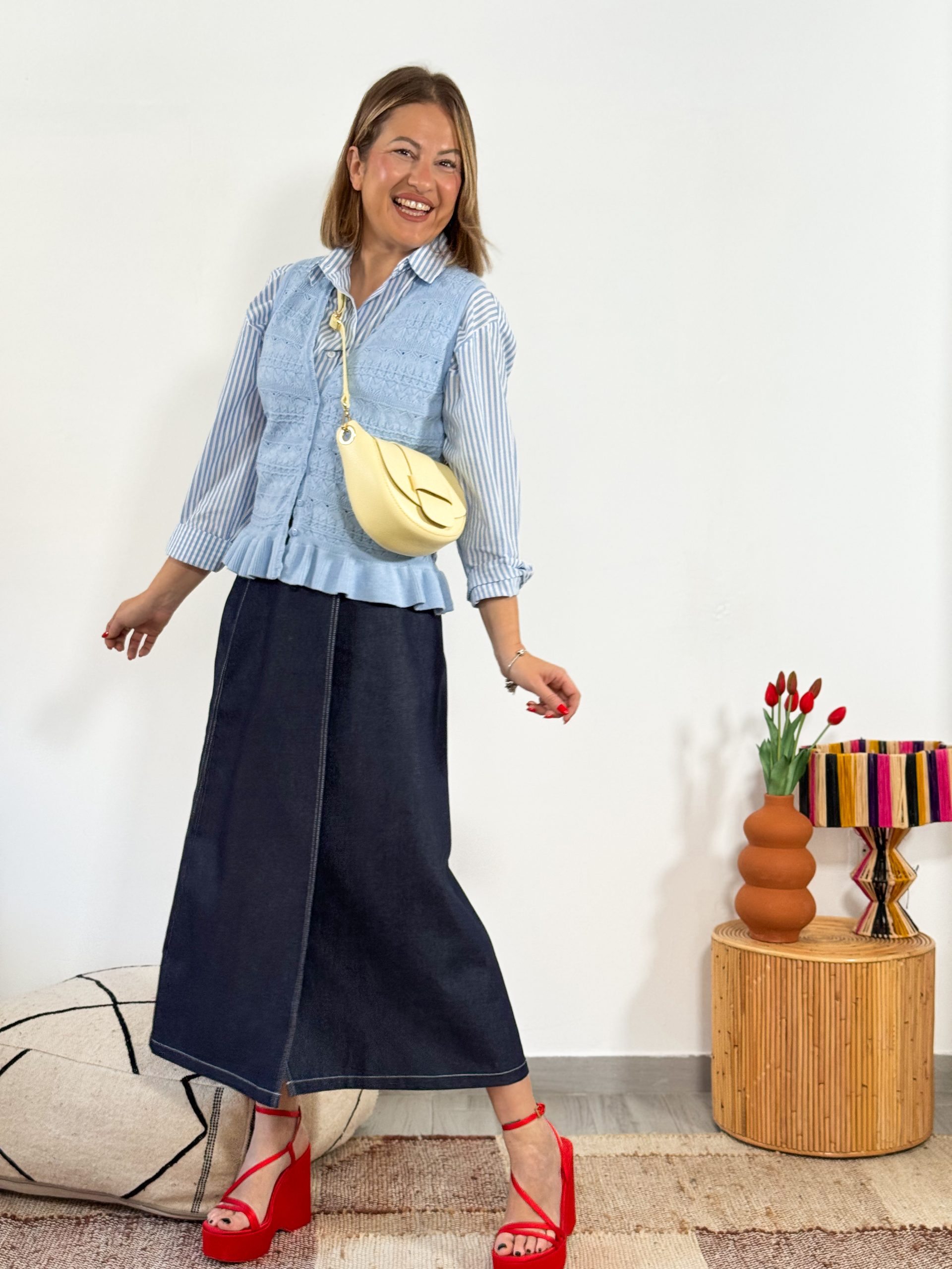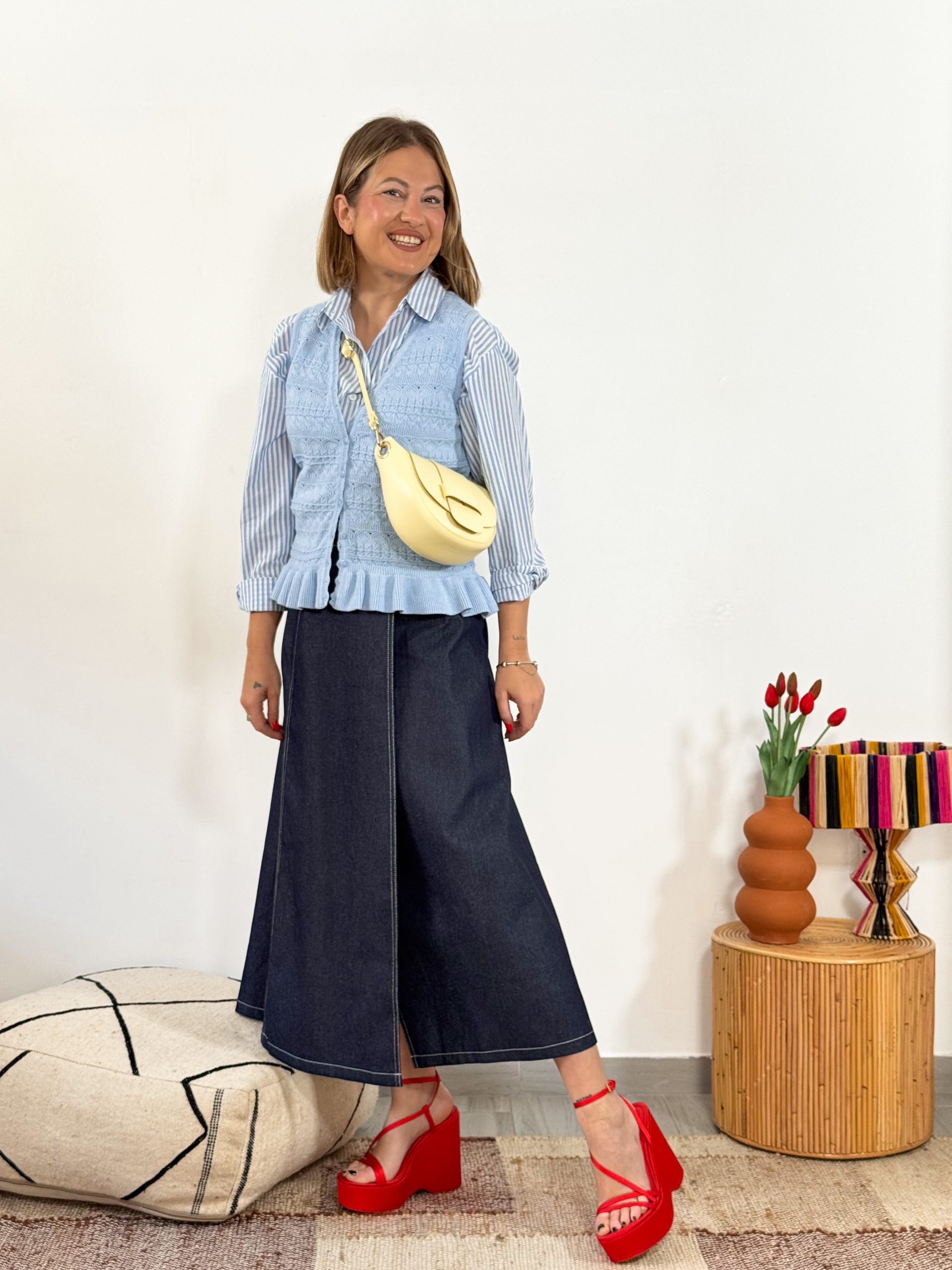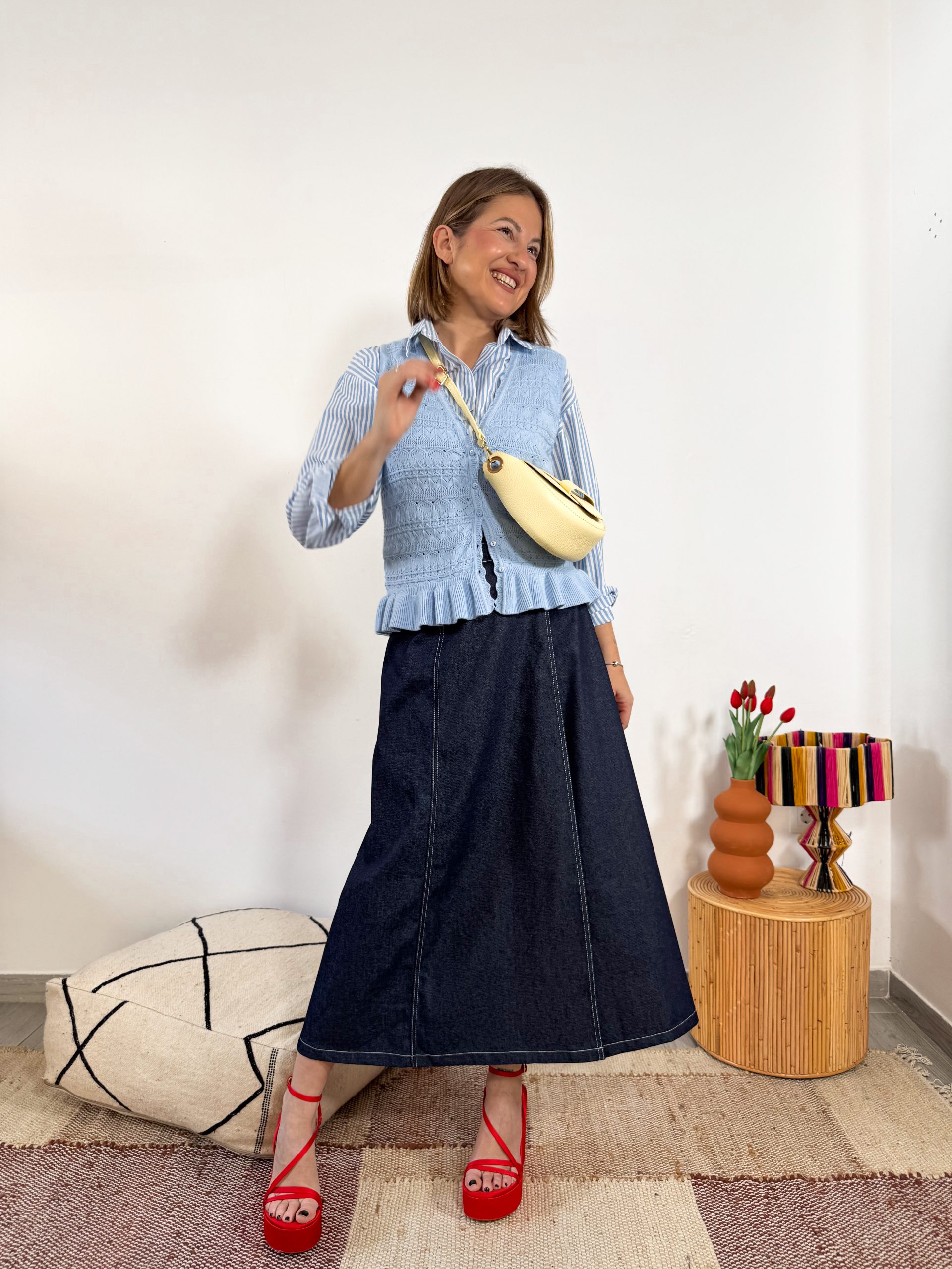 Falda vaquera de tiro alto con cierre de cinturón