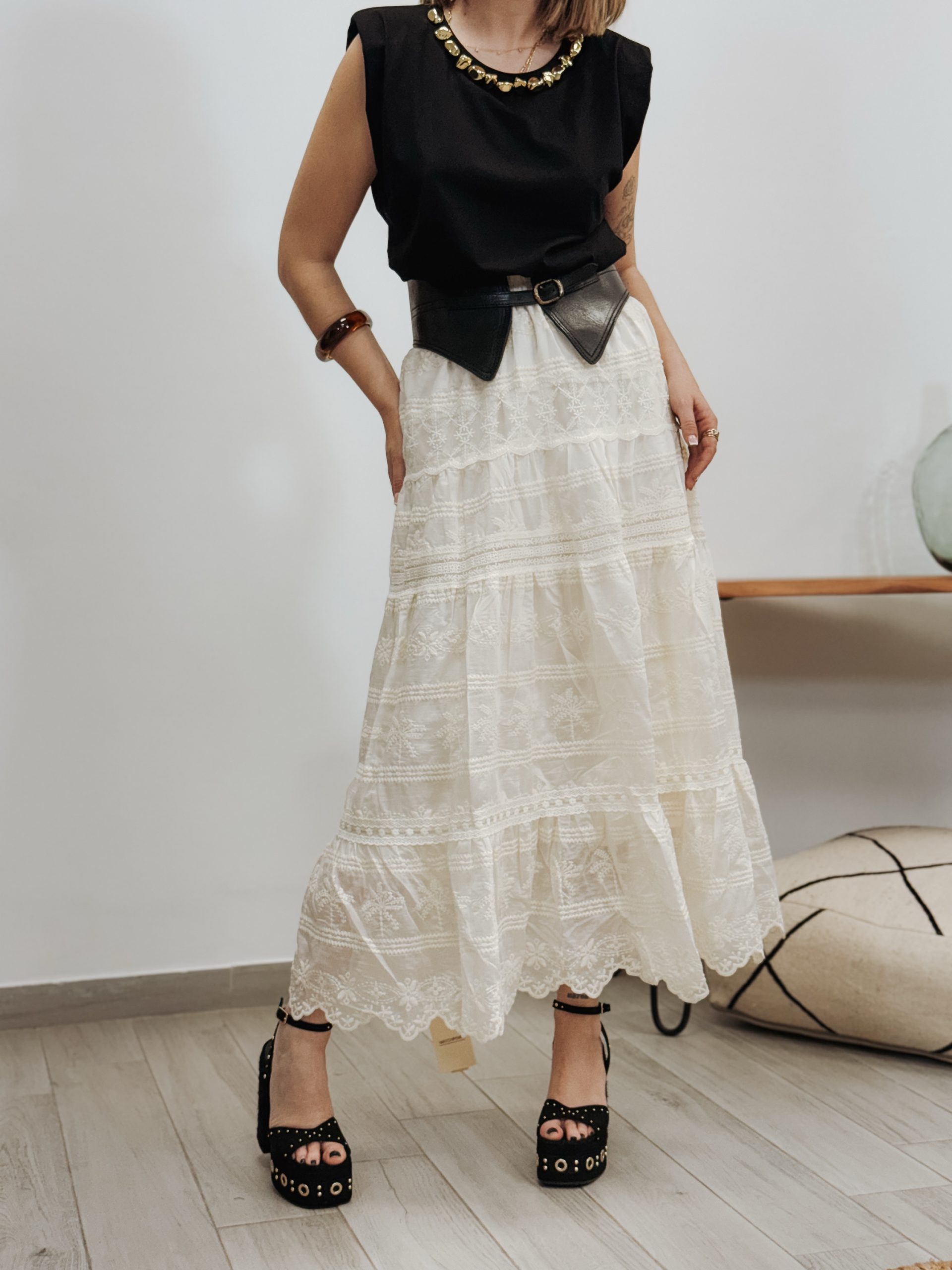 Sé el primero en valorar “Falda senty beige bordada”
