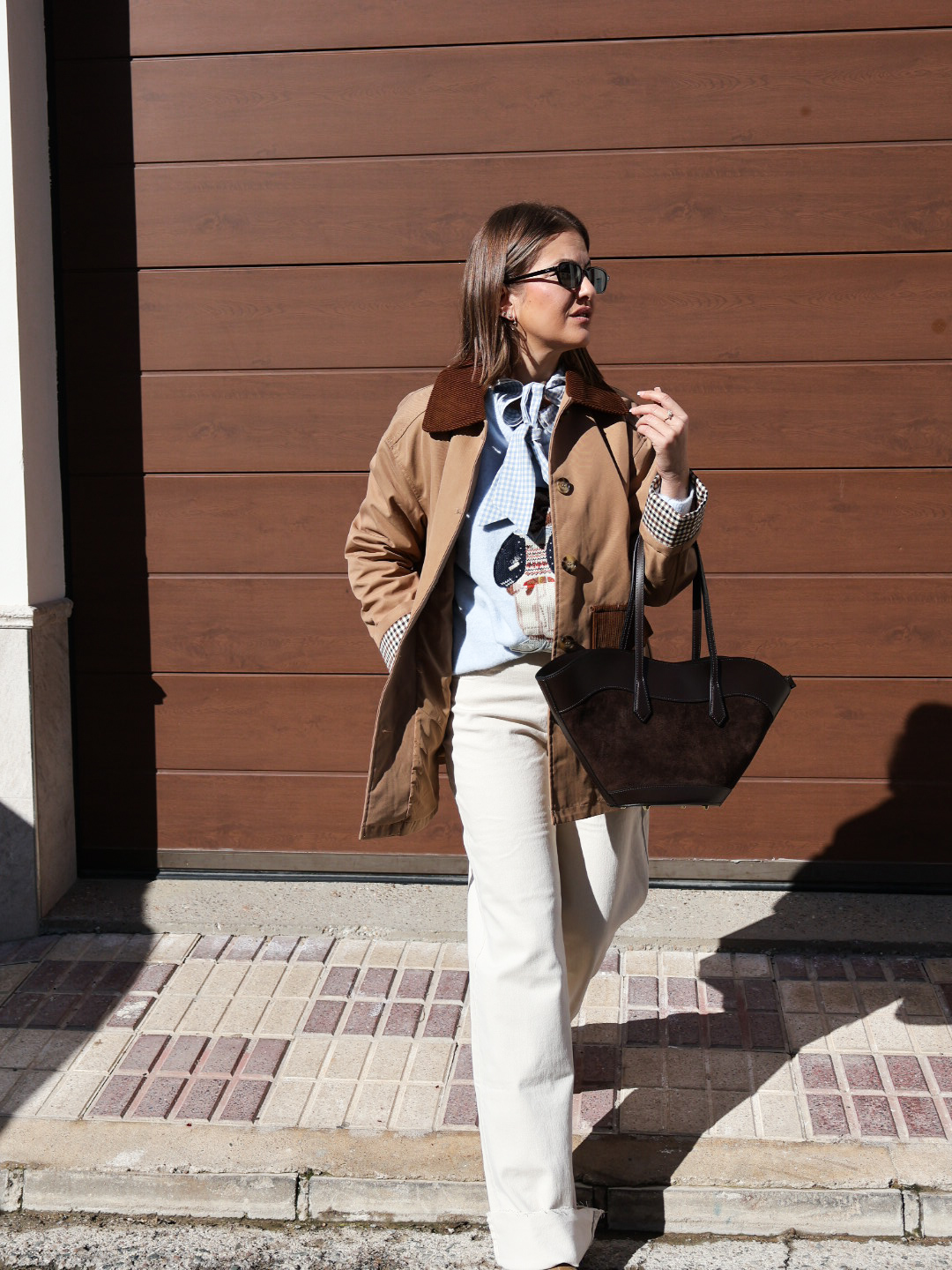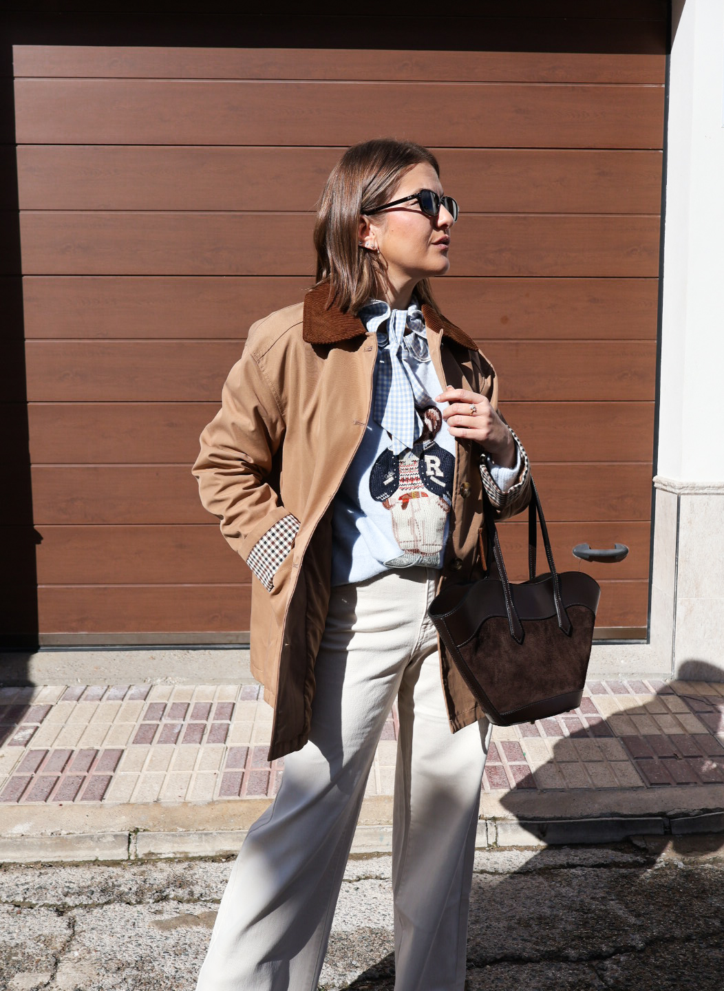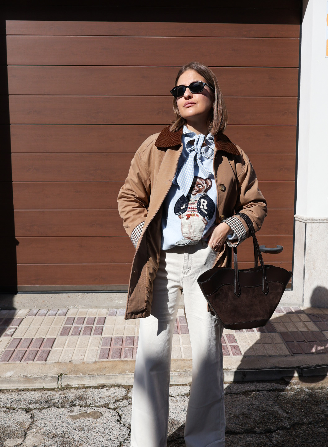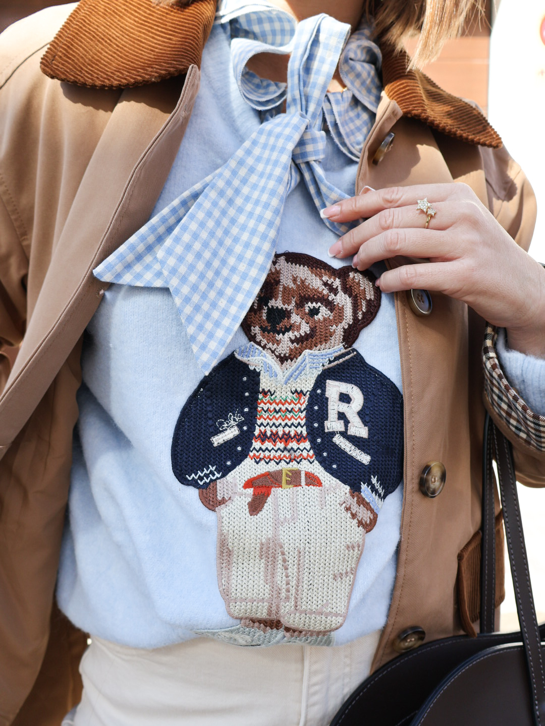 Jersey de lana en color blanco celeste con detalle de oso bordado