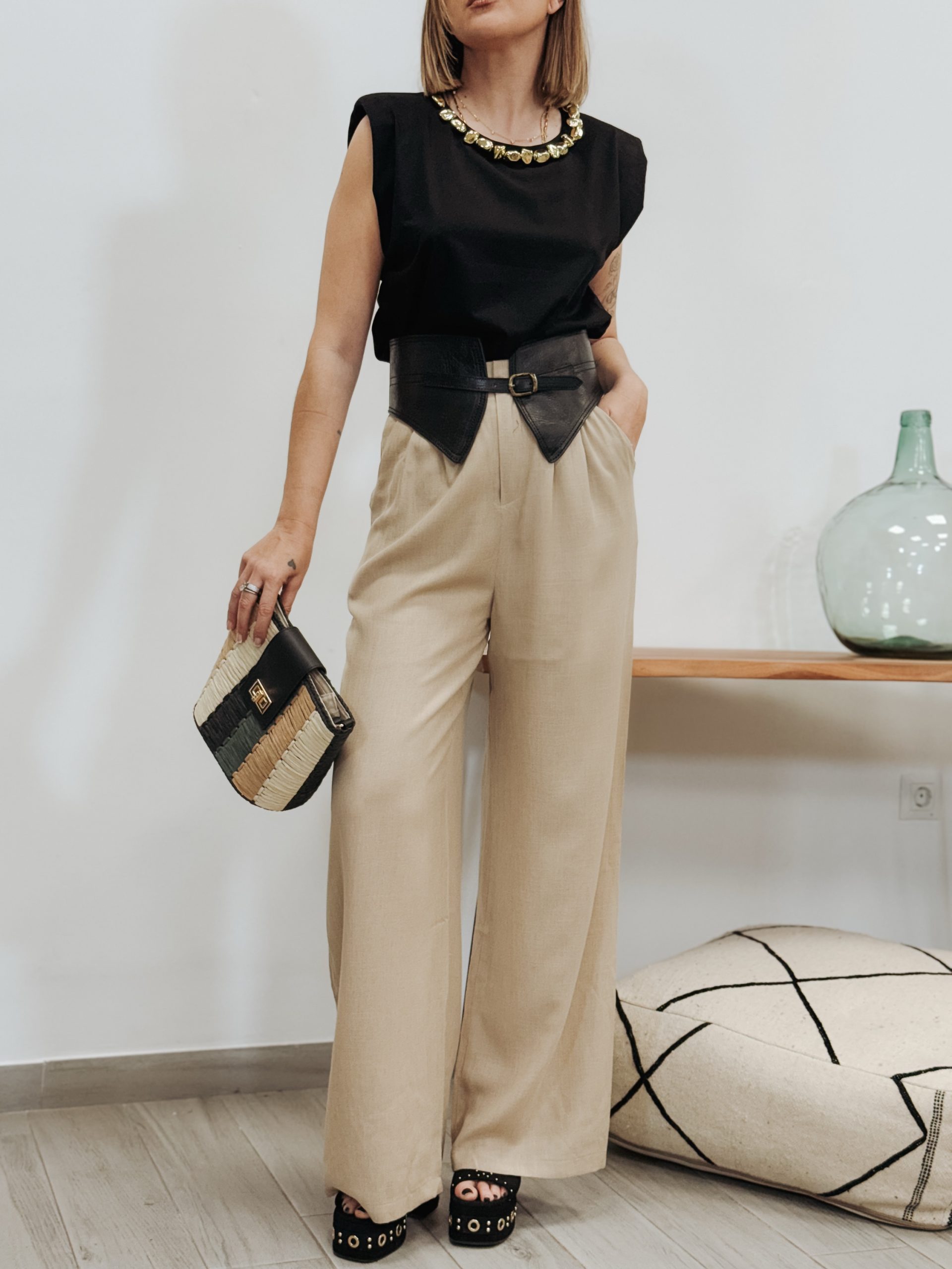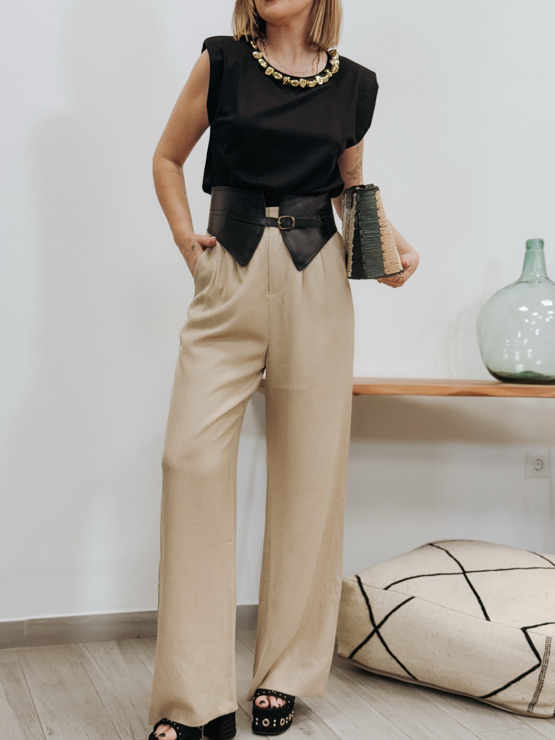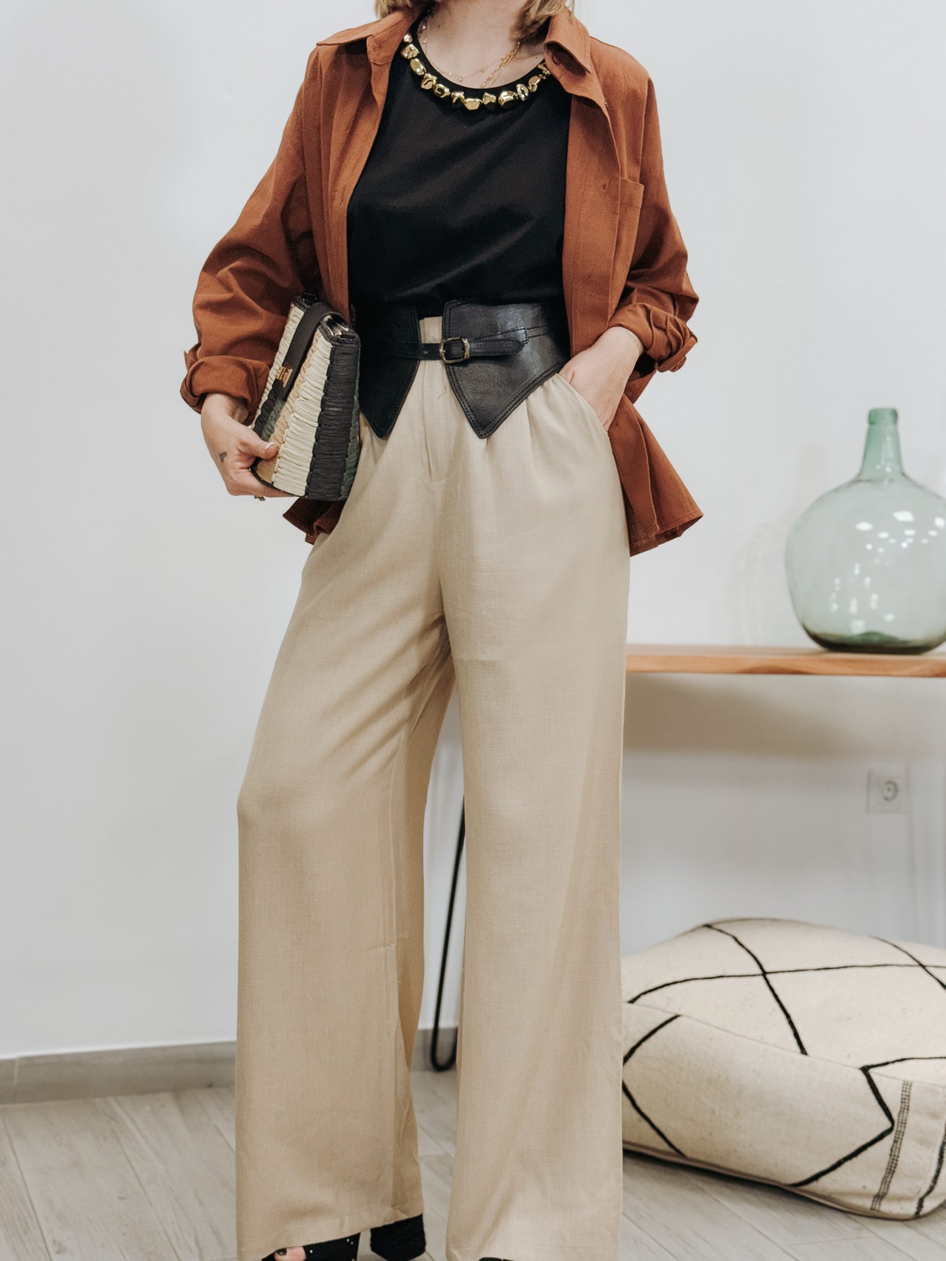 Pantalón lino beige